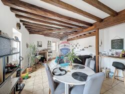 Au rez-de-chaussée : un appartement de 62 m², entièrement refait à neuf et meublé, comprenant une belle cuisine ouverte sur le salon, deux chambres, une salle d'eau et un WC séparé.