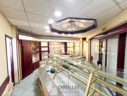 Un local commercial à rénover de 100 m2 (ancienne boulangerie), composé : Un espace de vente avec son entrée et une belle vitrine, un atelier, une chambre froide avec espace de stockage, un couloir desservant une seconde entrée, un espace en sous-sol avec une deuxième chambre froide et un wc séparé. Usage possible : commerce, bureaux, professions libérales, restauration (sous réserve d'autorisations).