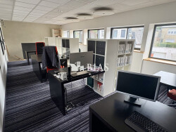 À l'étage : un vaste plateau de travail ouvert, baigné de lumière naturelle, aujourd'hui organisé en open space pour quatre postes, avec la possibilité de créer des bureaux individuels.