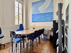 Très bel immeuble de bureaux en pierre d'environ 193 m², idéalement situé à seulement 200 mètres de la gare d'Angoulême, à l'entrée du plateau. Un emplacement particulièrement recherché pour une activité professionnelle. L'immeuble se compose au rez-de-chaussée d'un espace d'accueil / salle d'attente, de deux grands bureaux, d'une spacieuse salle de réunion, d'une salle de pause et d'un sanitaire. Ce niveau bénéficie également d'un accès direct à une grande terrasse donnant sur un agréable jardin. Au premier étage, on retrouve un grand espace de coworking, trois bureaux individuels, une salle de pause ainsi qu'un sanitaire.Le deuxième étage accueille une pièce de rangement. L'ensemble offre de beaux volumes, de belles hauteurs sous plafond et un parquet chaleureux, dans un très bon état général. Des travaux récents ont été réalisés, notamment la couverture et le système de chauffage au gaz. Un garage indépendant de 8 places avec porte sectionnelle motorisée peut également être acquis en complément. Enfin, cet immeuble présente un fort potentiel de transformation en habitation, permettant d'imaginer une grande maison familiale pleine de charme, tout en conservant le cachet de la pierre et la qualité de son emplacement. Visite virtuelle disponible sur demande.