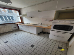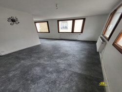 Au-dessus : Un appartement F2 comprenant : couloir d'entrée avec placard de rangement, une chambre, WC individuel, salle de bains, rangement, salon-séjour, cuisine aménagée. CC gaz.