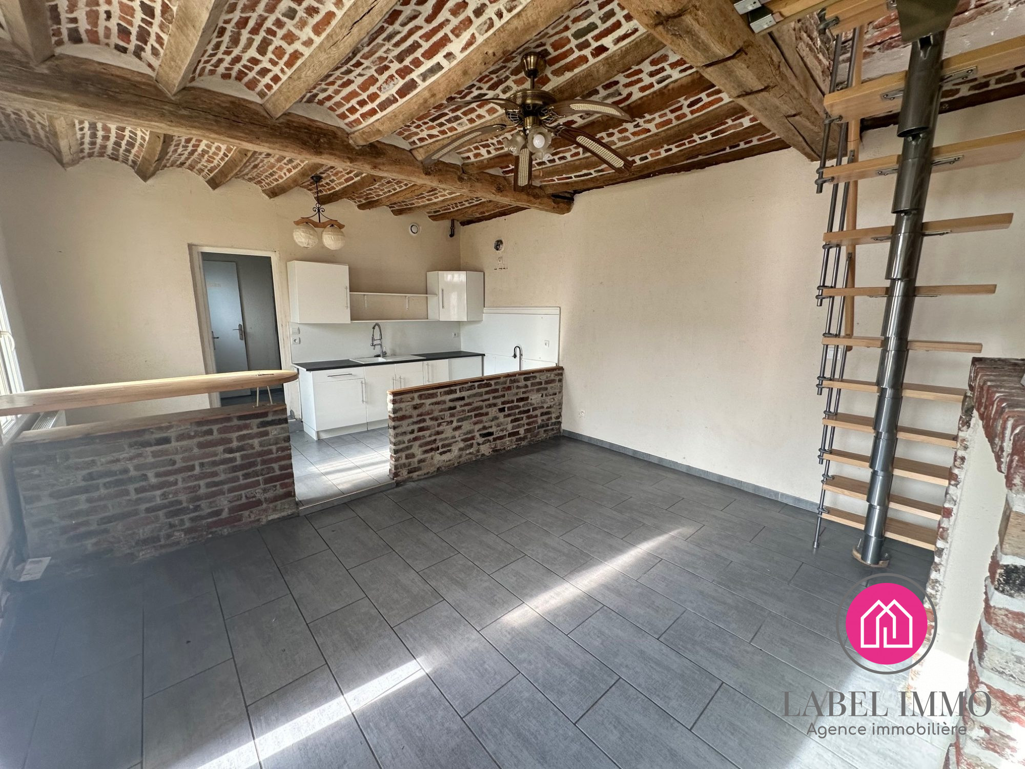loyer 550 /mois Hors charges compteur d'eau individuel une belle pièce de vie avec cuisine aménagée ouverte sur les séjour salon une chambre coin bureau en mezzanine parquet neuf sur toute la surface du logement
