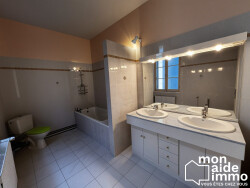 À l'étage, un spacieux appartement en duplex de 120 m², réparti sur les premier et deuxième niveaux, comprenant une cuisine, un cellier, un séjour, une salle de bain avec WC et trois chambres. Un bien aux volumes généreux, idéal pour de la location familiale ou colocation.