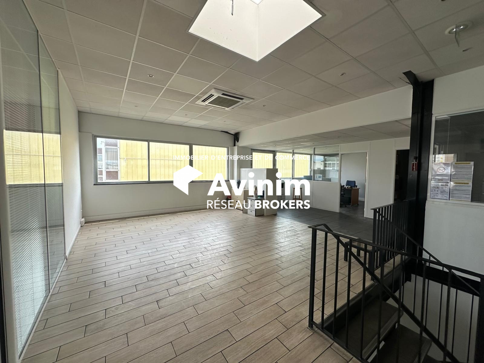 Zone accueil et Bureaux R+1 : Accès escalier béton et marches carrelées Revêtement de sol en dalle moquette 50*50 Goulottes informatiques prêtes à recevoir le câblage Faux plafond dalle minérales 60*60 avec éclairage LED intégré (300lux) 1 prise de courant pour 3m² Chauffage par radiateurs électriques par inertie Sanitaires carrelés et wc suspendu.