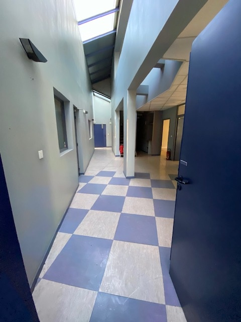 Hauteur libre sous poutre : 6.50 mètres Portes Sectionnelles de plain pied : 2 unités, dimensions 3x3 mètres 7 Places de Parkings VL + en foisonnement Toiture isolé bac acier double peau Structure béton Prise triphasé 380 V Sol béton lisse Tarif bleu (36kVa) Fibre optique Climatisation réversible