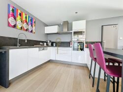 Sur la commune de Mérignies, superbe maison individuelle de 136 m2 hors lotissement dans un état irréprochable (rénovation en 2017) Grande pièce de vie avec séjour doté d'un poêle à bois 2022, parquet, cuisine récente de marque, entièrement équipée, espace repas, cellier d'env. 7m2. Garage une voiture de 25 m2 avec porte automatisée. A l'étage 4 belles chambres dont un superbe domaine parental de 13 m2 avec immense dressing de 8m2 et salle de douche. Autre salle de bains pour les enfants. La maison est équipée de la fibre.Chaudière neuve de marque Frisquet connectée. Volets electriques sur toute la maison. Beau jardin clos et arboré. Situation très calme à 3 mn du Golf, proche des écoles maternelles, collèges privés et publiques ainsi que de l'institution de Genech. 15 mn en train de la gare de Lille. Pas de copro. A découvrir aussi vite que possible. Vidéo disponible
