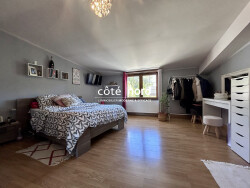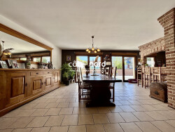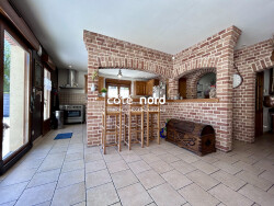 Maison individuelle de 183 m² habitables avec un bâtiment de 120 m². Au rez-de-chaussée : hall d'entrée, cuisine aménagée et équipée, ouvert sur grand salon-séjour, salle d'eau, WC indépendants. À l'étage : palier, 4 grandes chambres, lingerie avec WC. Chauffage central gaz, double vitrage PVC. Extérieur : grande terrasse de 60m², jardin entièrement clôturé, allée macadam, et un grand bâtiment de 120 m² offrant de multiples possibilités. Le tout sur une parcelle de 719 m². Maison très lumineuse. Environnement calme.