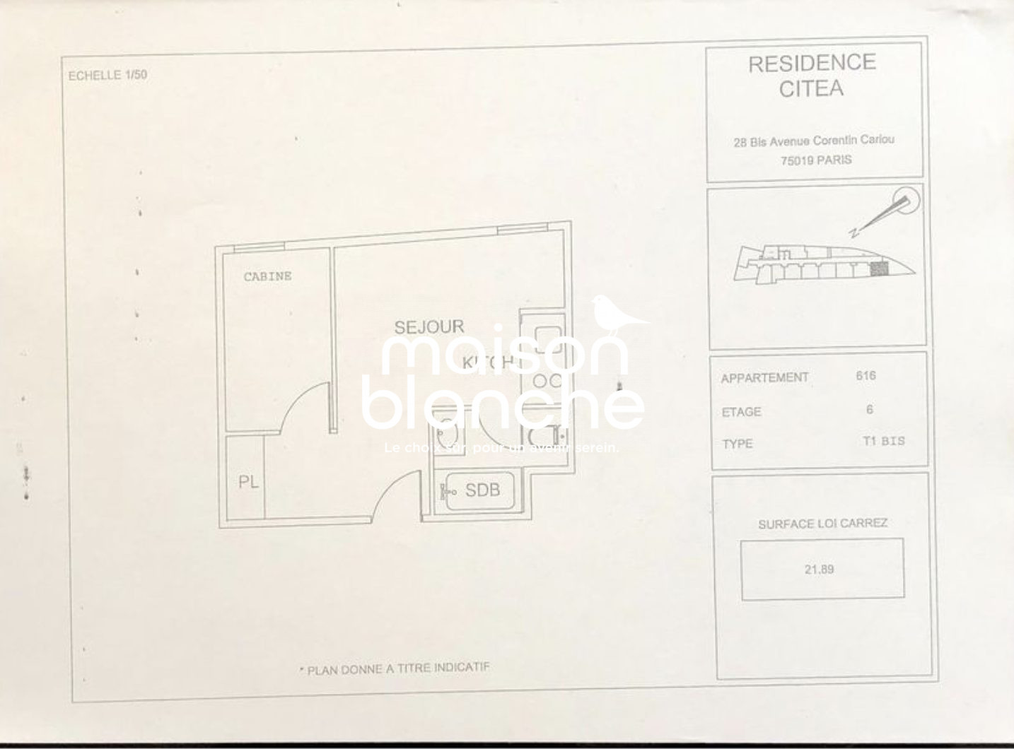 Type de Bien : Appartement T1 meublé Localisation : 11-27 RUE GASTON TESSIER - 75019 PARIS Surface : 20,36 m² Nombre de Pièces : 1 Etage : R+2 Année de Construction : 2016 Etat Général : Bon Etat Gestionnaire : NEXITY STUDEA