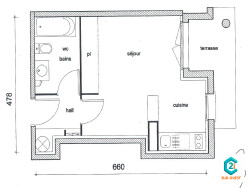 Ce studio de 34 m2 dispose d une pièce de vie lumineuse avec coin cuisine et d une salle d eau avec WC.
