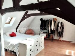 Une pièce de vie, une cuisine aménagée puis une belle chambre, à deux étages différents avec des combles et une surface au sol de 80 m2.