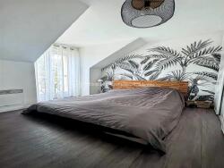 Il se compose au rez-de-chaussée d'une entrée, d'un séjour lumineux avec accès direct à la terrasse, d'une cuisine équipée et d'un WC indépendant.