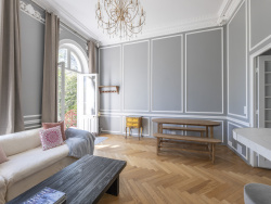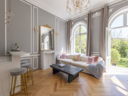 Situé à l'entrée du Parc de Maisons-Laffitte, à seulement 5 minutes à pied de la gare, cet appartement de caractère de 86,74m2 au sol offre un cadre de vie rare. Entièrement rénové avec des prestations de qualité, il prend place au sein d'une superbe bâtisse ancienne au charme préservé. De plain-pied, il propose une distribution idéale et fonctionnelle : un vaste salon-séjour baigné de lumière, une cuisine américaine entièrement équipée, 3 chambres, un espace entrée/bureau pouvant faire office de 4ème chambre, une salle de bain, 2 WC et une mezzanine de 8m2 idéale en espace de rangement. L'élégance des moulures, la cheminée et la qualité des prestations assurent le parfait équilibre entre cachet de l'ancien et confort contemporain. À l'extérieur, véritable privilège : un superbe jardin privatif de 420m2, sans vis-à-vis, au calme absolu car situé en retrait de l'avenue. Deux places de stationnement privatives et sécurisées viennent parfaire ce bien exceptionnel. Véritable atout supplémentaire : un sous-sol aménageable offrant de multiples possibilités : studio indépendant, salle de sport, espace de rangement ou pièce de vie complémentaire selon les envies et besoins. Un lieu de vie rare, où le cachet rencontre le confort moderne, dans l'un des secteurs les plus recherchés de Maisons-Laffitte.
