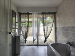 Au rez-de-jardin, une entrée avec couloir dessert un séjour lumineux, un salon avec insert, une cuisine aménagée et équipée, une suite parentale avec salle de bains et douche, un bureau, une buanderie et un WC.