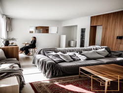 Joli 2 PP MEUBLE de 63 m2 dans Immeuble Pierre de Caen au RDC comprenant : Séjour/salon, cuisine américaine ouverte sur séjour aménagée et équipée, chambre, SDB ET WC