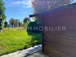 À l'extérieur, vous profitez d'un bel espace vert privatif avec un abri de jardin, parfait pour les loisirs ou le rangement.
