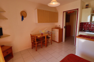 Vente aux Quilles Studio à Sète. Composé: D'une kitchenette équipée salon, cabine et terrasse. Vendu meublé avec parking privé. Exposé plein sud dans immeuble sécurisé.