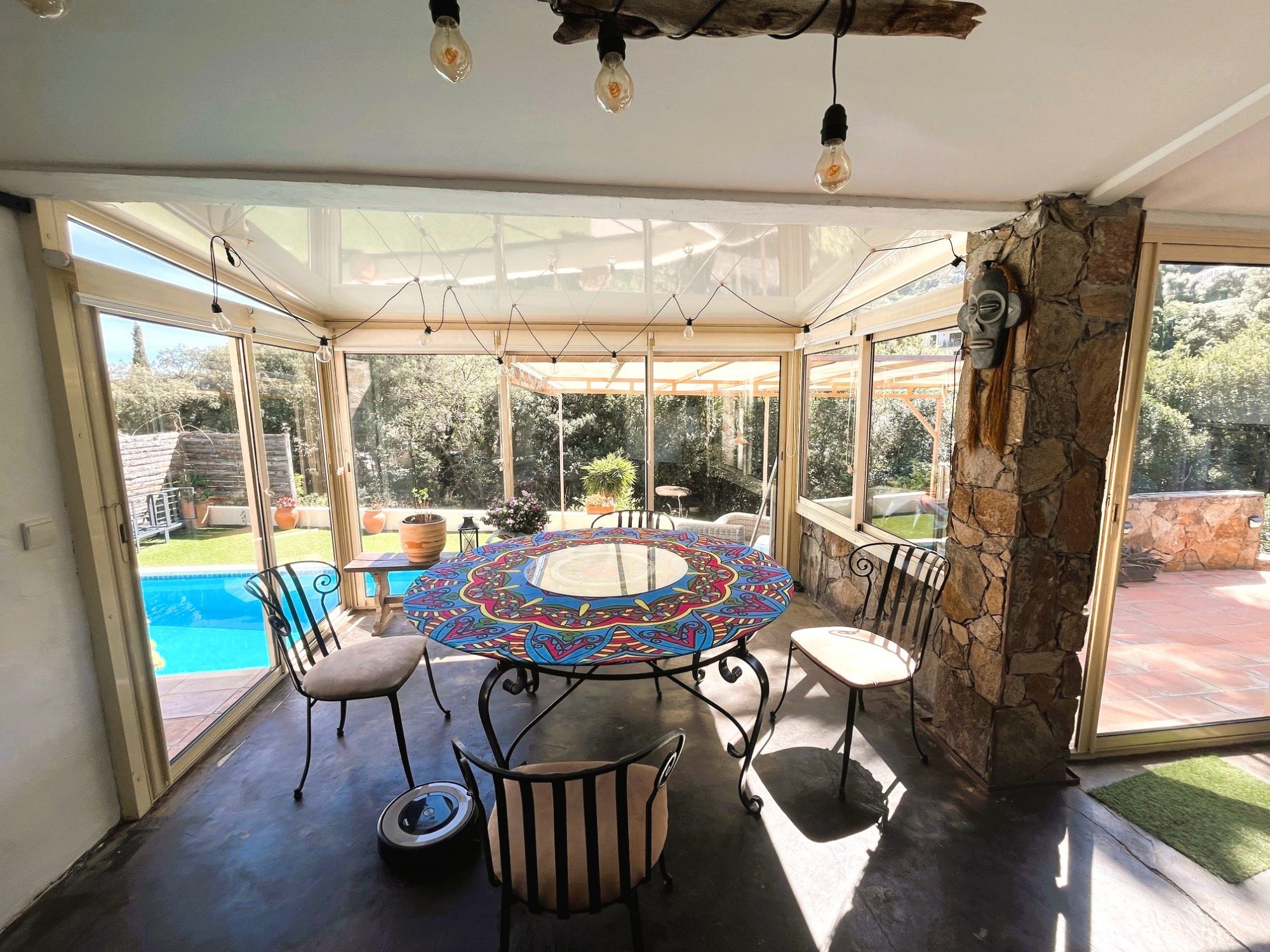 À l'extérieur, tout est pensé pour profiter pleinement des beaux jours : une vaste terrasse ombragée idéale pour recevoir, une magnifique piscine en pierre de Bali propice à la détente, ainsi qu'un chalet indépendant, parfait pour accueillir, créer un espace de travail ou laisser libre cours à vos projets.