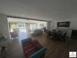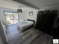 Au rez-de-chaussée : - Entrée avec placard - Cuisine équipée ouverte sur un grand salon-séjour lumineux - 2 chambres - Salle d'eau - WC séparés - Très grand garage de plus de 50 m²