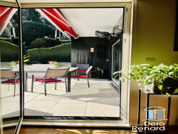 À l'abri des regards, nous vous proposons à la vente cette charmante maison d'architecte de 170 m² exposée sud dotée d'une terrasse et d'un joli jardin plat et paysager. Elle se compose, au premier étage, d'une belle entrée, d'une cuisine équipée et aménagée semi séparée par de belles verrières, d'une salle à manger, d'un séjour avec cheminée offrant un accès direct à la terrasse et au jardin par une grande porte-fenêtre. Deux belles chambres avec placards, une salle de douches avec une baignoire et des toilettes indépendants complètent ce niveau. Au rez-de-chaussée, une grande chambre (environ 30 m²) et des toilettes indépendants s'ajoutent aux prestations. La maison dispose d'un garage et d'une cave.