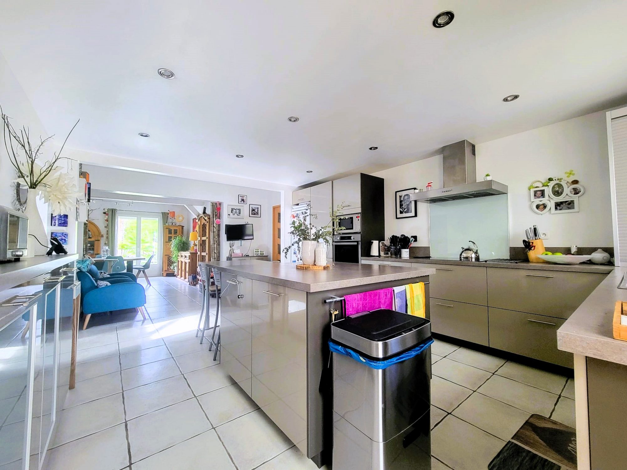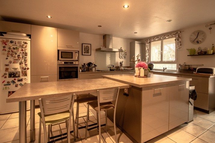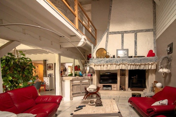 Rez-de-chaussée Hall d'entrée avec verrière vitrée : 11 m² Deux pièces de stockage : 6 m² et 10,8 m² WC invités : 2 m² Salon lumineux, double exposition, avec poêle à bois : 42 m² Cuisine / salle à manger entièrement équipée, double exposition, avec poêle à bois : 27 m² Vestibule avec accès à la terrasse couverte, buanderie / local technique / chaufferie : 5,1 m² Deuxième WC avec lavabo : 5,4 m² Hall d'entrée d'origine avec escalier : 14 m² Bureau ou chambre supplémentaire avec poêle à bois : 13,8 m² Suite parentale :Chambre : 17 m² Salle de bains avec baignoire en fonte sur pieds, douche à l'italienne, double vasque, WC : 15,5 m² Couloir et deux dressings : 15,3 m²