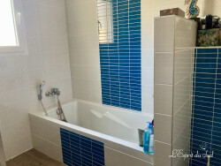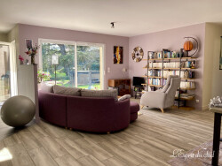 Face à un parc privé et au calme donc, une jolie maison de plain-pied, de 2018, dans un quartier résidentiel. Simple à vivre et très bien pensée. Entrée avec WC et lave-mains Placards intégrés puis la Cuisine ouverte bien équipée Grand séjour lumineux avec baie vitrée A gauche de la cuisine le Cellier / buanderie