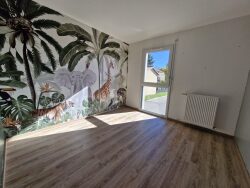 Proche centre-village d'Ampuis, Maison mitoyenne récente de type 4 de 88 m² environ dans un lotissement calme. Elle comprend au rez-de-chaussée, un vaste hall d'entrée avec espace bureau et placard mural, une chambre, une salle d'eau avec wc et un espace buanderie et rangement donnant accès au garage de 20 m² environ. A l'étage, une belle pièce de vie avec une cuisine entièrement équipée (four, plaque induction, hotte, lave-vaisselle, frigo/congél et nombreux rangements) qui s'ouvre sur le jardin de 85 m² exposé ouest avec vu sur les vignes. Deux autres chambres dont une avec placard mural, une salle de bain et toilettes séparés. Une place de parking en plus du garage et des stationnements devant la maison. Chauffage individuel gaz. La maison va être repeinte quasiment en totalité (sauf tapisserie). Disponible rapidement. Loyer hors charge : 1150 euros/mois.