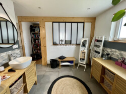 La cuisine américaine équipée, ouverte sur le séjour, est un véritable atout pour les amateurs de cuisine et de vie sociale.