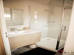 une grande salle de bain avec coin buanderie.