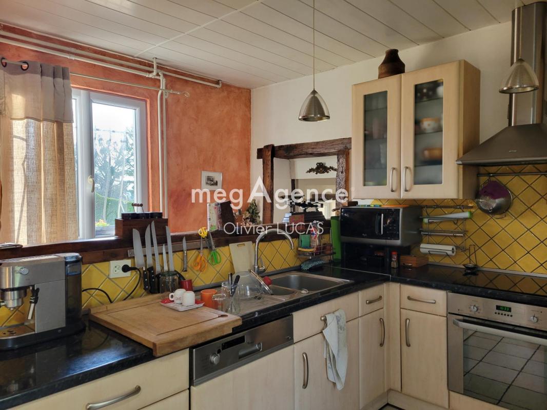 La demeure propose en son rez-de-chaussée une vaste cuisine très accueillante ouverte sur sa véranda offrant une pièce de plus de 40m². La cuisine est entièrement aménagée et équipée avec ilot central, un poêle à granulés est présent dans la véranda. Toujours au même niveau un couloir desservant la salle de douche et les sanitaires mène à une seconde pièce de vie d'égale superficie accueillant le séjour salon avec sa cheminée insert, son accès à la terrasse extérieure et un escalier en bois menant à l'étage. Celui-ci ouvre sur un vaste palier avec de nombreux placards et desservant trois chambres et un toilette....