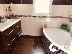 Sur la commune de Theze, Très jolie villa T4 entièrement meublée avec goût 103m², mitoyenne par le garage: composée d'une entrée avec placard, d'une cuisine moderne entièrement équipée, d'un séjour lumineux avec terrasse, de 3 grandes chambres avec dressing, d'une salle de bains (baignoire + douche + 2 vasques), d'un cellier-buanderie, d'un garage, d'une cave. Vous profiterez d'un terrain de 850m² clôturé, arboré.