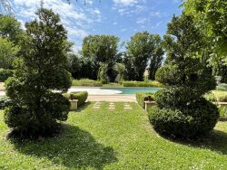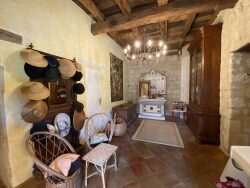 Sur les hauteurs d'une colline gersoise, à 10 minutes de Lectoure, offrant des vues à couper le souffle, ce véritable bijou d'histoire rénové dans le respect de ses éléments d'origine ne pourra que vous séduire. Ancienne salle médiévale du XIII? siècle, devenue au fil du temps un « château » avec l'ajout d'une élégante échauguette carrée en pierre bâtie en encorbellement, la propriété a traversé les siècles avec caractère et authenticité. Aujourd'hui, elle s'inscrit dans un écrin de verdure et de sérénité absolue. Le portail s'ouvre sur une majestueuse allée menant à ce lieu d'exception, organisé en deux espaces distincts.La bâtisse principale, de 365 m², dévoile dès l'entrée un salon chaleureux de 45 m², agrémenté d'une cheminée, et une superbe cuisine de 50 m² avec tomettes anciennes et cheminée en pierre, prolongée par une buanderie et une arrière-cuisine abritant un ancien four à pain. Une chaufferie ainsi qu'un WC complètent ce niveau. Depuis la terrasse extérieure, vous accédez à une suite indépendante composée d'une chambre et de sa salle de bains privative, ainsi qu'à un atelier. Un bel escalier extérieur en pierre et bois conduit à une seconde terrasse couverte desservant l'étage. Vous y découvrirez deux vastes chambres d'environ 50 m² chacune, dont l'une bénéficie d'un bureau attenant pouvant aisément faire office de chambre supplémentaire, ainsi qu'une spacieuse salle de bains. À l'arrière de la maison, 70 m² restent à aménager selon vos envies et vos projets. Une grange en pierre d'environ 180 m², offrant une majestueuse hauteur sous plafond, complète l'ensemble avec plusieurs espaces de rangement, atelier, garage et local technique piscine. À l'extérieur, la beauté du site est tout simplement remarquable. Le parc d'environ un hectare, soigneusement arboré et d'un calme absolu, accueille une superbe piscine ainsi que plusieurs espaces de détente pour profiter pleinement du climat gersois. Une propriété rare, empreinte d'histoire et de caractère, à découvrir sans tarder.