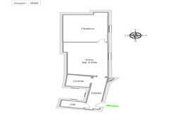Il se compose d'une entrée, d'un séjour de 14,37 m2, d'une chambre confortable de plus de 13 m2, d'une cuisine indépendante, d'une salle d'eau et de WC.
