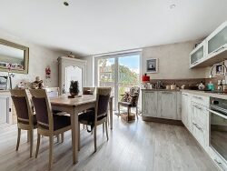 Situé dans un ancien corps de ferme entièrement rénové en 2014, l'appartement se compose d'un hall d'entrée, une cuisine ouverte sur le salon-séjour, un cellier, deux chambres, une salle de bain avec douche et meuble vasque, et un WC indépendant.