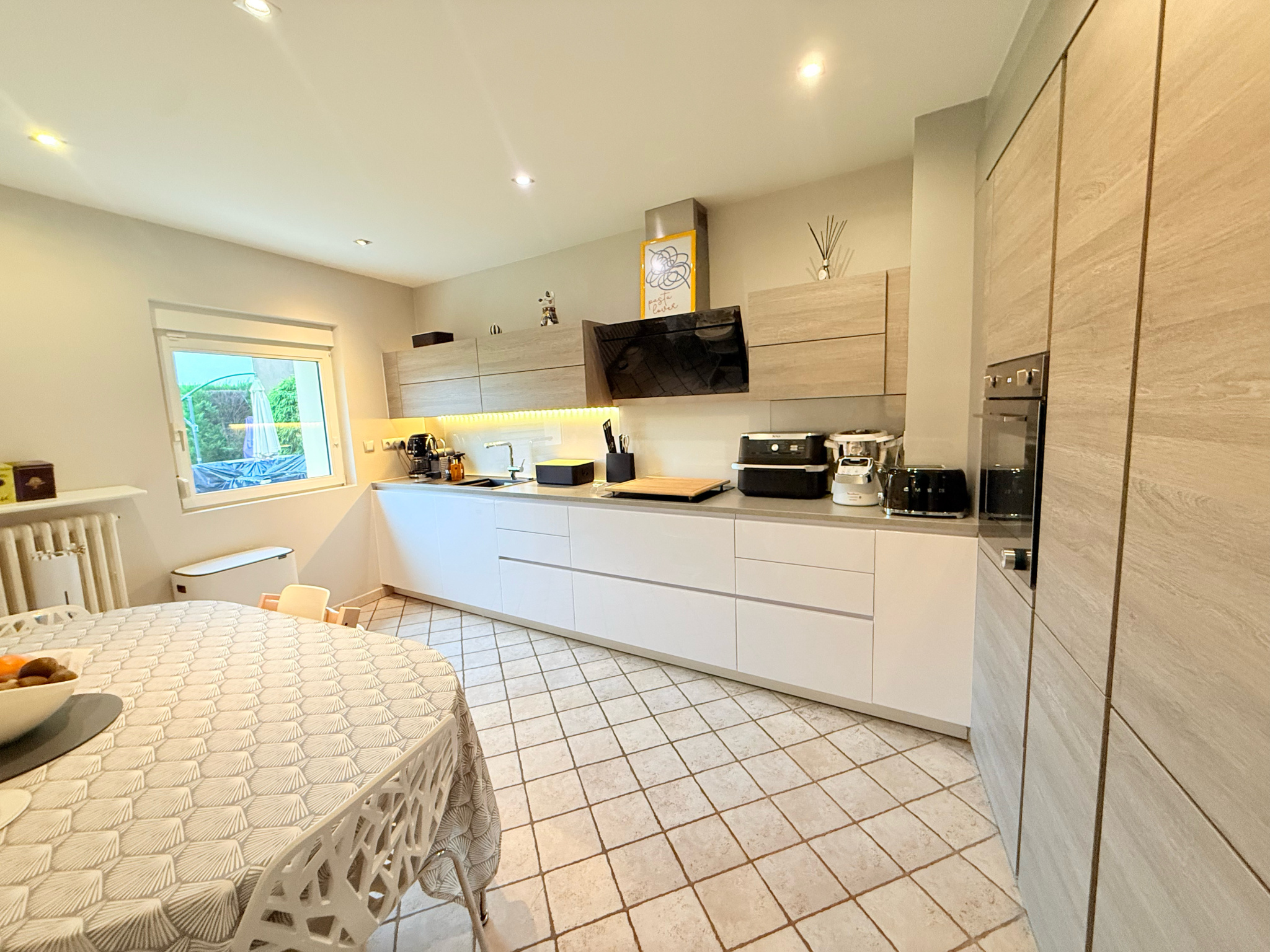 KUNTZIG - OPEN Immobilier vous propose en exclusivité cette très belle maison individuelle édifiée en 2007 sise dans quartier résidentiel d'une surface habitable de 157 m2 habitable (167,09 m2 au sol) composée principalement comme suit: * AU RDC: un hall d'accueil de 9,81 m2 avec placard, un vaste salon séjour de 41,20 m2 carrelé doté d'une cheminée, une cuisine équipée de 15,04 m2 intégralement équipée, accédant tous deux sur la terrasse et le jardin, un WC séparé suspendu avec lave-mains. * AU DEMI-NIVEAU SUPERIEUR: un dégagement desservant 3 chambres à coucher faisant respectivement 12,01 m2, 11,75 m2 et 15,80 m2 dont deux dotées de placards, une SDB équipée de 6,45 m2 ... * LE DERNIER DEMI-NIVEAU comprend pour sa part, un vaste espace bureau accédant sur un balcon en façade avant, 2 chambres à coucher avec dressing. * LE DEMI-SOUS-SOL: espace buanderie, chaufferie, grand garage avec porte motorisée, cellier avec placard ... * EXTERIEUR: une grande terrasse, jardin et maison de jardin ... PRIX: 450 000,- EUR honoraires charge VENDEURS *** Complément d'informations *** - Chauffage central au gaz (chaudière changée en 2021) - Terrasse et avancée de la maison récents - Maison de jardin - Maison édifiée sur vide sanitaire Pour plus d'informations, n'hésitez pas à contacter l'agence OPEN IMMOBILIER Hettange-Grande au 03 82 54 74 50 ou Mme KARACA N. au 06 63 85 87 22, ou par e-mail à karaca.open57@gmail.com ou karaca@open57.fr. Planifiez une visite de cette charmante maison dès maintenant et imaginez-vous y vivre confortablement.