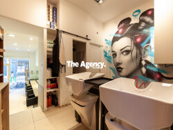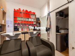 Le local est composé de la manière suivante : Une pièce principale comprenant une salle d'attente, un espace caisse, 7 fauteuils, 2 bacs de lavage, une réserve, une salle de repos.