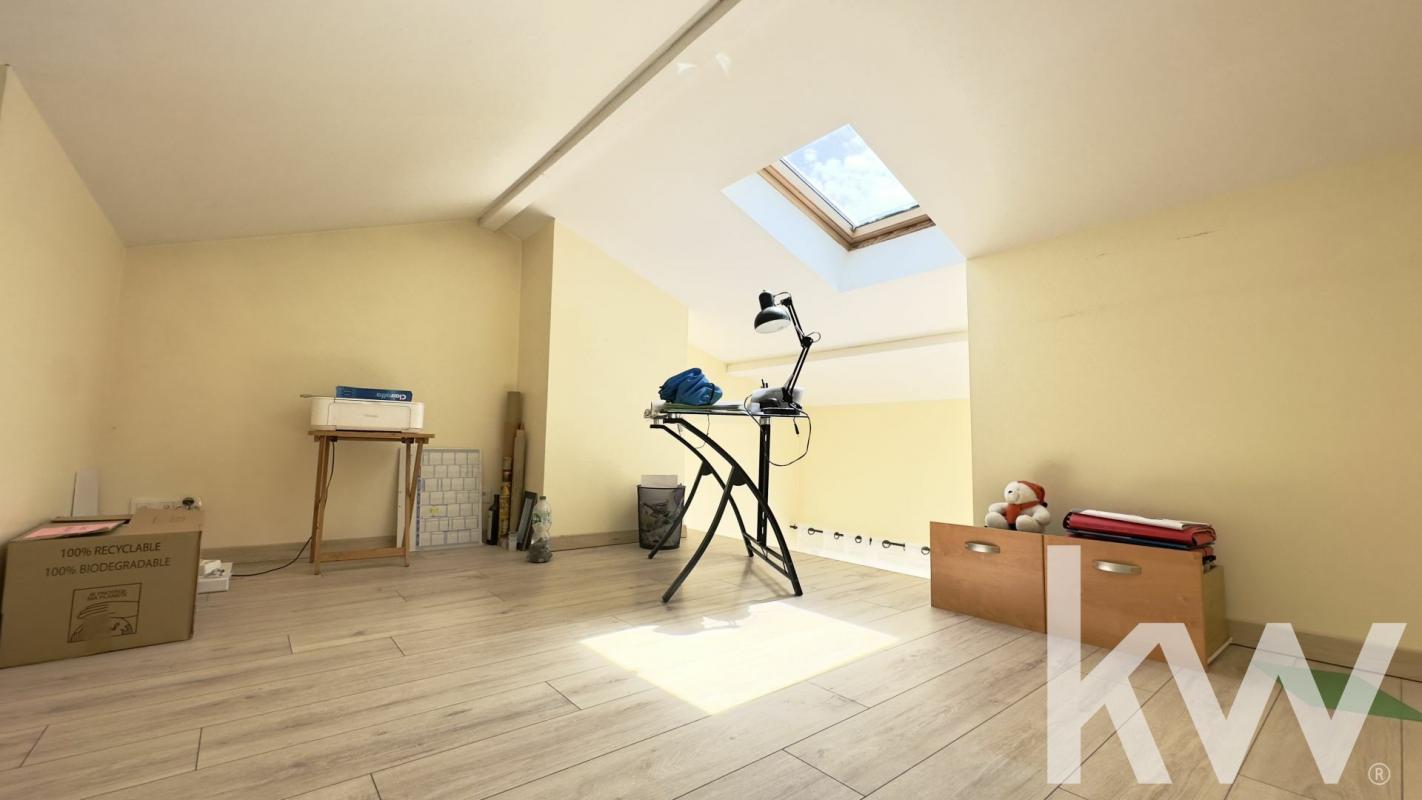 En rez-de-chaussée, vous trouverez une pièce à vivre avec cuisine ouverte d'environ 33 m2, des WC séparés ainsi qu'un espace cellier sous escalier.