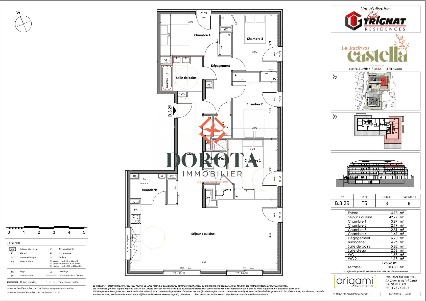 L'ENVOL - Situé rue Henri Giraud. Sur la commune du Versoud T5 de 116m² au dernier étage d'une copropriété avec ascenseur. Séjour + cuisine ouverte de 46m² donnant accès à une grande terrasse de 110m2 avec une vue dégagée sur les montagnes, 4 chambres avec rangements, dont 2 avec une salle d'eau, chacune ayant un accès sur l'extérieur, 1 salle de bain, 2 wc. 2 places de stationnement.Les informations sur les risques auxquels ce bien est exposé sont disponibles sur le site Géorisques http://www.georisques.gouv.fr33 lots principaux