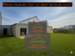 AG immobilier commissions réduites Pacé : Notre agence est heureuse de vous présenter cette maison neuve de 125m² sur un terrain qui sera clos et engazonné de 393m² avec une grande terrasse en bois exposée ouest ! Elle comprend au rdc : Une belle entrée avec placard, une lumineuse pièce de vie de 46m² avec cuisine équipée ouverte, une suite parentale de 18m² avec salle d'eau et dressing privatifs, une buanderie, un wc suspendu avec lave-mains. A l'étage un palier dessert 3 chambres avec possibilité placards, une salle de bains avec douche et baignoire, un wc. La maison profite également d'un garage attenant avec porte sectionnelle électrique ! Chauffage par pompe à chaleur avec plancher chauffant au rdc ! Fenêtres en aluminium avec volets électriques au rdc et à l'étage ! Assurance dommage ouvrage qui sécurise la maison pendant 10 ans ! Honoraires d'agence réduits Prix HNI 425 385 (soit 411 000 net vendeur + 3.5% d'honoraires à la charge de l'acquéreur). Ag immobilier commissions réduites Pacé 02.99.85.61.30 2 agences à votre service sur Rennes et Pacé ! Tous nos biens et + de photos sur notre site www.agimmobilier.fr Les informations sur les risques auxquels ce bien est exposé sont disponibles sur le site Géorisques : www. georisques. gouv. fr
