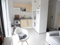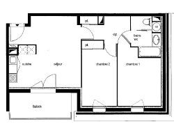 Appartement 3 pièces de 56 m² composé d'une entrée, d'un séjour, d'une cuisine aménagée et semi-équipée (plaque de cuisson, hotte), 2 chambres dont une avec placard, salle de bains - WC.