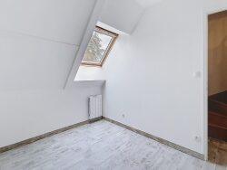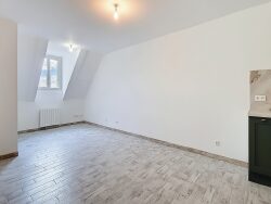 Appartement 3 pièces de 57 m² (76 m² au sol) composé d'une cuisine aménagée semi équipée (plaque de cuisson, hotte) ouverte sur le séjour, 2 chambres dont une en duplex, une salle d'eau et WC indépendant.