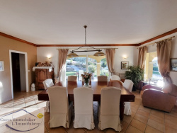LA CRAU, villa d'exception dans un jardin paysagé d'environ 2 800m2. Venez découvrir cette superbe villa d'architecte, de constrcuction purement traditionnelle de 1997, dans un style néo-provençal. Vous apprécierez tout le confort d'environ 170 m2 : hall d'entrée avec rangements et wc, une pièce de vie d'environ 70 m2 ouvrant par des baies à galandage sur une terrasse d'envrion 56 m2 et sa cuisine d'été. Suite parentale de plain-pied, office, lingerie, vaste bureau d'environ 28 m2. L'étage présente 2 chambres d'environ 14 m2 ayant chacune un solarium d'environ 15 m2, une salle d'eau, un wc. Vous pourrez vous détendre au bord de la pisicne chauffée avec plage et terrasses, admirer le jardin joliment arboré, et profiter du boulodrome. En bordure de l'espace piscine, un généreux poolhouse d'environ 45 m2 aménagé en T2 vous permettra d'accueillir vos amis. Tout a été pensé : aspiration et sonorisation centralisée, climatisation, volets roulants électrique, chaufferie, forage, arrosage et éclairage automatique... Stationnement au gré des allées pavées, carport, garage à vélos... A moins de 5 minutes du centre-ville, dans un havre de paix résidentiel.