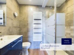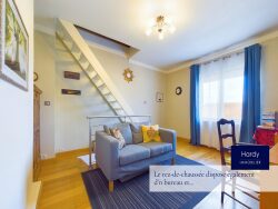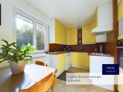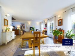 Rez-de-chaussée : Entrée : Accueillante avec placard de rangement Séjour : Vaste espace de 47 m² comprenant un espace salon et un espace salle à manger. Particulièrement lumineux grâce aux larges ouvertures donnant sur la terrasse. Cuisine : Individuelle et aménagée et équipée. WC indépendant avec lave-mains. Bureau avec en souplex chambre avec salle d'eau. Garage : Grand garage Étage :Palier: Spacieux et pratique. Chambres : Trois belles chambres lumineuses dont une avec dressing en duplex. Salle de bains : Spacieuse avec baignoire et douche. Extérieur :Jardin : Entièrement clos, arboré et fleuri, sur l'avant de la maison propice aux jeux de enfants ou aux soirées estivales entre amis. Terrasse : Terrasse exposition sud. Équipements supplémentaires :Parking : 3 places de stationnement à l'extérieur devant l'accès au garage. Cette maison est idéale pour une famille cherchant confort, tranquillité tout en étant à deux pas des commodités. N'attendez plus pour visiter cette chaleureuse maison.