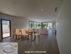 LA FARLEDE, venez découvrir cette villa T5 de plain-pied d'environ 150m2, construction de 2025, édifiée sur un terrain plat arboré d'environ 1400m2. Vous rêvez d'une villa moderne répondant parfaitement aux tendances actuelles, lumineuse : cette superbe propriété facile à vivre, aux beaux volumes, saura immédiatement vous séduire. Elle se compose d'une entrée donnant sur un vaste salon/séjour d'environ 70m2 avec de larges baies coulissantes faisant face à la piscine, et deux chambres. Un dégagement dessert un pôle nuit composé de 2 chambres dont une suite parentale avec dressing, SDE + WC, une SDE et WC. Il vous restera le plaisir d'implanter une cuisine adaptée à votre mode de vie. En complément : une dépendance/poolhouse d'environ 47m2 comprenant une cuisine aménagée et équipée ouverte sur un salon, un dégagement dessert une pièce avec placard, une SDE et un WC. Côté extérieur : laissez-vous charmer par ce magnifique jardin complanté d'essences méditerranéenne, sa piscine 12 x 7 dotée d'un îlot végétalisé, ses espaces détentes et terrasses. Un garage double d'environ 27m2 avec deux portes automatisées communiquant avec la maison vient compléter le côté fonctionnel de ce bien. Les informations sur les risques auxquels est exposé ce bien sont disponibles sur le site Géorisques : www.georisques.gouv.fr