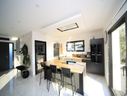 Charlotte Monier / IMMOJOY vous propose en EXCLUSIVITE à quelques km de Muret, au sud-ouest de Toulouse, dans la commune du Fauga, une maison de qualité, construite en 2021, offrant 139m2 sur un terrain de 745m2 avec un très bel espace piscine. Vous cherchez une maison de plain-pied, dans un style ultra contemporain, lumineuse, connectée, avec un grand espace de vie commun, 3 chambres, un studio complémentaire indépendant, une maison tournée vers la lumière, ouverte sur un espace piscine très esthétique, vous souhaitez pouvoir être rapidement sur Toulouse, vous êtes au bon endroit ! La pièce de vie de plus de cinquante m2 est extrêmement épurée et lumineuse. Tout y est de qualité : les matériaux comme la finition. La cuisine ouverte avec son ilot central est parfaitement bien équipée et très design. Elle communique avec un cellier (7m2) accueillant de nombreux rangements, un second espace cuisine, et certains équipements techniques de la maison. Cet espace se prolonge par un très bel ensemble, terrasse/ piscine/ pergola, sans vis à vis. Vous êtes baignés de lumière. L'espace nuit est parfaitement séparé. 2 chambres de plus de 11m2 avec chacune un grand placard intégré. Une grande salle de bains (plus de 7m2) est équipée d'une très belle baignoire, d'une douche à l'italienne, de deux vasques, l'ensemble dans un style toujours ultra moderne et épuré. La suite parentale (24m2) s'ouvre directement sur l'espace piscine, son dressing (plus de 7.5m2) est très généreux, et la salle d'eau est aussi élégante. Les propriétaires ont choisi de transformer le garage (18m2) en espace indépendant : isolé, chauffé, avec arrivée d'eau. L'espace de stationnement extérieur est très généreux : on peut y garer facilement 4 voitures ; il offre aussi aux plus petits une superbe voie privée pour apprendre à faire du vélo en toute sécurité, sans être dans la rue ! Equipement technique : PAC sous gaine avec air-zones, ballon thermodynamique 270L, huisserie aluminium, aspirateur central rétractable, domotique (volets, alarme, portails....commandés par téléphone), système de sécurité très abouti (interphone, visiophone, caméras, alarme, éclairage automatique par détection de mouvements). 2 toilettes indépendantes avec éclairage automatique. Piscine : 9*4, liner gris anthracite très élégant, système d'éclairage télécommandé avec jeu de lumières, volet de sécurité électrique, filtre à verre, régulateur de PH. Vous aimez la modernité, vous chercher une maison vous offrant un accès hyper rapide sur Toulouse (30mn de l'hyper centre toulousain), contactez-moi. Je répondrai à vos questions avec précision, je serai ravie de vous y conduire. Une visite virtuelle est disponible sur demande. Les surfaces sont communiquées à titre indicatif. Surface de référence : 139m2, avec 130m2 pour la maison principale, et 9m2 de surface complémentaire (ex garage, 18m2 pondérés à 50%). Les informations sur les risques auxquels ce bien est exposé sont disponibles sur le site Géorisques : www.georisques.gouv.fr Cette annonce vous est proposée par Monier Charlotte - EI - NoRSAC: 911 903 060, Enregistré à Chambre de commerce et de l'industrie de Toulouse