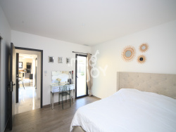 Charlotte Monier / IMMOJOY vous propose en EXCLUSIVITE à quelques km de Muret, au sud-ouest de Toulouse, dans la commune du Fauga, une maison de qualité, construite en 2021, offrant 139m2 sur un terrain de 745m2 avec un très bel espace piscine. Vous cherchez une maison de plain-pied, dans un style ultra contemporain, lumineuse, connectée, avec un grand espace de vie commun, 3 chambres, un studio complémentaire indépendant, une maison tournée vers la lumière, ouverte sur un espace piscine très esthétique, vous souhaitez pouvoir être rapidement sur Toulouse, vous êtes au bon endroit ! La pièce de vie de plus de cinquante m2 est extrêmement épurée et lumineuse. Tout y est de qualité : les matériaux comme la finition. La cuisine ouverte avec son ilot central est parfaitement bien équipée et très design. Elle communique avec un cellier (7m2) accueillant de nombreux rangements, un second espace cuisine, et certains équipements techniques de la maison. Cet espace se prolonge par un très bel ensemble, terrasse/ piscine/ pergola, sans vis à vis. Vous êtes baignés de lumière. L'espace nuit est parfaitement séparé. 2 chambres de plus de 11m2 avec chacune un grand placard intégré. Une grande salle de bains (plus de 7m2) est équipée d'une très belle baignoire, d'une douche à l'italienne, de deux vasques, l'ensemble dans un style toujours ultra moderne et épuré. La suite parentale (24m2) s'ouvre directement sur l'espace piscine, son dressing (plus de 7.5m2) est très généreux, et la salle d'eau est aussi élégante. Les propriétaires ont choisi de transformer le garage (18m2) en espace indépendant : isolé, chauffé, avec arrivée d'eau. L'espace de stationnement extérieur est très généreux : on peut y garer facilement 4 voitures ; il offre aussi aux plus petits une superbe voie privée pour apprendre à faire du vélo en toute sécurité, sans être dans la rue ! Equipement technique : PAC sous gaine avec air-zones, ballon thermodynamique 270L, huisserie aluminium, aspirateur central rétractable, domotique (volets, alarme, portails....commandés par téléphone), système de sécurité très abouti (interphone, visiophone, caméras, alarme, éclairage automatique par détection de mouvements). 2 toilettes indépendantes avec éclairage automatique. Piscine : 9*4, liner gris anthracite très élégant, système d'éclairage télécommandé avec jeu de lumières, volet de sécurité électrique, filtre à verre, régulateur de PH. Vous aimez la modernité, vous chercher une maison vous offrant un accès hyper rapide sur Toulouse (30mn de l'hyper centre toulousain), contactez-moi. Je répondrai à vos questions avec précision, je serai ravie de vous y conduire. Une visite virtuelle est disponible sur demande. Les surfaces sont communiquées à titre indicatif. Surface de référence : 139m2, avec 130m2 pour la maison principale, et 9m2 de surface complémentaire (ex garage, 18m2 pondérés à 50%). Les informations sur les risques auxquels ce bien est exposé sont disponibles sur le site Géorisques : www.georisques.gouv.fr Cette annonce vous est proposée par Monier Charlotte - EI - NoRSAC: 911 903 060, Enregistré à Chambre de commerce et de l'industrie de Toulouse