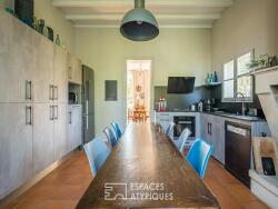 A l'intérieur, chaque pièce révèle l'élégance de l'architecture ancienne. Le hall d'entrée dessert de vastes salons baignés de lumière, où parquet massif et moulures apportent une atmosphère raffinée. La distribution harmonieuse permet d'accueillir des espaces de réception adaptés à la vie de famille comme aux moments conviviaux grâce à une cuisine dinatoire entièrement aménagée et équipée. L'authenticité du bâti se conjugue ici à des prestations soignées, garantissant un confort quotidien.