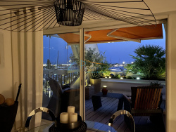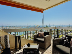 La Grande Motte - Quartier Port - vue exceptionnelle Rare ! Duplex de 84 m2 entièrement rénové dans une résidence de standing avec ascenseur et gardien. Vue imprenable sur le port avec une triple exposition. Salon / salle à manger, et cuisine ouvrant sur 2 grandes terrasses (21 m2 et 13 m2), 2 chambres, 1 bureau, 2 salles d'eau rénovées, 2 toilettes, 2 loggias. L'appartement est équipé de double vitrage et de volets roulants électriques. Aucun travaux à prévoir. Bien vendu avec une place de parking et un cellier. Possibilité de louer un garage dans la résidence.