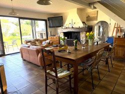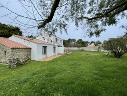 ENVIRONNEMENT EXCEPTIONNEL, proche de la mer et à l'orée du Bois des Eloux pour cette charmante propriété de style noirmoutrin. En fond d'impasse, sans vis-à-vis et au calme, elle vous offre une belle pièce de vie lumineuse ouverte sur terrasse avec cheminée, une cuisine aménagée ouvrant également sur la terrasse, deux chambres en rez-de-chaussée, une salle d'eau et une salle de bains. A l'étage, un espace bureau mène à deux chambres avec cabinets de toilette. La maison propose également un vaste garage attenant, un cellier et une remise. Pour vos retours de plage, une salle d'eau extérieur vous accueillera. Le tout est édifié sur un terrain de 915 m2 clos. BLEU IMMOBILIER NOIRMOUTIERTEL 02 51 35 90 56