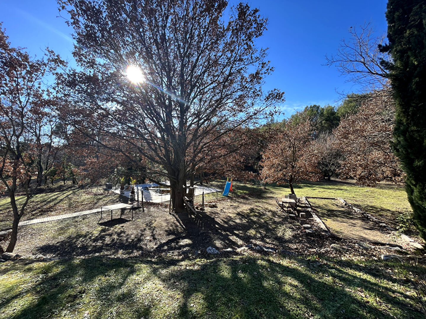 Architecture provençale chaleureuse pour cette maison de campagne située à Simiane, au calme absolu, tout en restant à distance de marche du centre du village. Élevée entièrement de plain-pied, elle développe environ 168 m2 et inclut un studio indépendant, idéal pour recevoir ou exercer une activité professionnelle. Dès l'entrée, la maison révèle un vaste espace de vie lumineux, véritable pièce maîtresse baignée de soleil grâce à ses nombreuses baies vitrées. Les poutres apparentes blanchies, la cheminée en pierre et les ouvertures sur le jardin créent une atmosphère douce et élégante. Ce séjour généreux accueille un salon convivial ainsi qu'une salle à manger ouverte sur la terrasse. La cuisine équipée, moderne et fonctionnelle, est séparée tout en restant communicante avec le séjour via un large passe-plat. Sa configuration permet de cuisiner tout en profitant d'une belle interaction avec les espaces de vie. Un bureau spacieux, lumineux et parfaitement organisé, complète les espaces fonctionnels de la maison. La partie nuit comprend deux chambres confortables bénéficiant de belles vues sur le jardin, ainsi qu'une salle de bains moderne aux teintes naturelles. La suite parentale forme un véritable appartement autonome : elle se compose d'un salon privatif, d'une chambre, d'un bureau, de deux salles d'eau et de deux WC. Un espace idéal pour préserver confort, intimité et indépendance. Le studio indépendant, doté d'une salle d'eau et d'un WC, est parfait pour accueillir famille et amis, ou pour créer un espace professionnel ou locatif. À l'extérieur, la propriété s'épanouit sur 2 200 m2 de terrain paysager, clos et soigneusement entretenu : pelouse, massifs méditerranéens, oliviers, arbres d'ornement, zones ombragées et terrain de pétanque composent un ensemble harmonieux et apaisant. L'espace piscine est un véritable lieu de vie estival : vaste plage dallée, environnement préservé et végétalisé, et superbe pool house entièrement aménagé (cuisine, salon, sanitaires, rangements). Un endroit idéal pour prolonger les journées en extérieur et recevoir en toute convivialité. Les nombreux stationnements, une buanderie indépendante et un grand garage complètent les prestations de cette propriété aux volumes rares. Une maison complète, lumineuse, fonctionnelle et parfaitement entretenue, offrant un cadre de vie exceptionnel à deux pas du village. Prix : 940 000 EUR Honoraires charge vendeur Taxes foncières : 2 701 EUR / an DPE : C (166 kWh/m2/an) GES : A (5 kg CO2/m2/an) Estimation des dépenses annuelles d'énergie : 1 580 EUR à 2 200 EUR (référence 2021 2023) Contact : Laurence 06 74 57 45 87 olivia.gaubert@pm-immobilier.fr Les informations sur les risques auxquels ce bien est exposé sont disponibles sur www.georisques.gouv.fr.