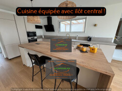 Elle comprend au rdc : Une entrée desservant une pièce de vie de 50m² avec cuisine ouverte équipée (ilôt central), une suite parentale avec dressing et salle d'eau privative, un espace bureau aménagée, une buanderie et un wc suspendu.